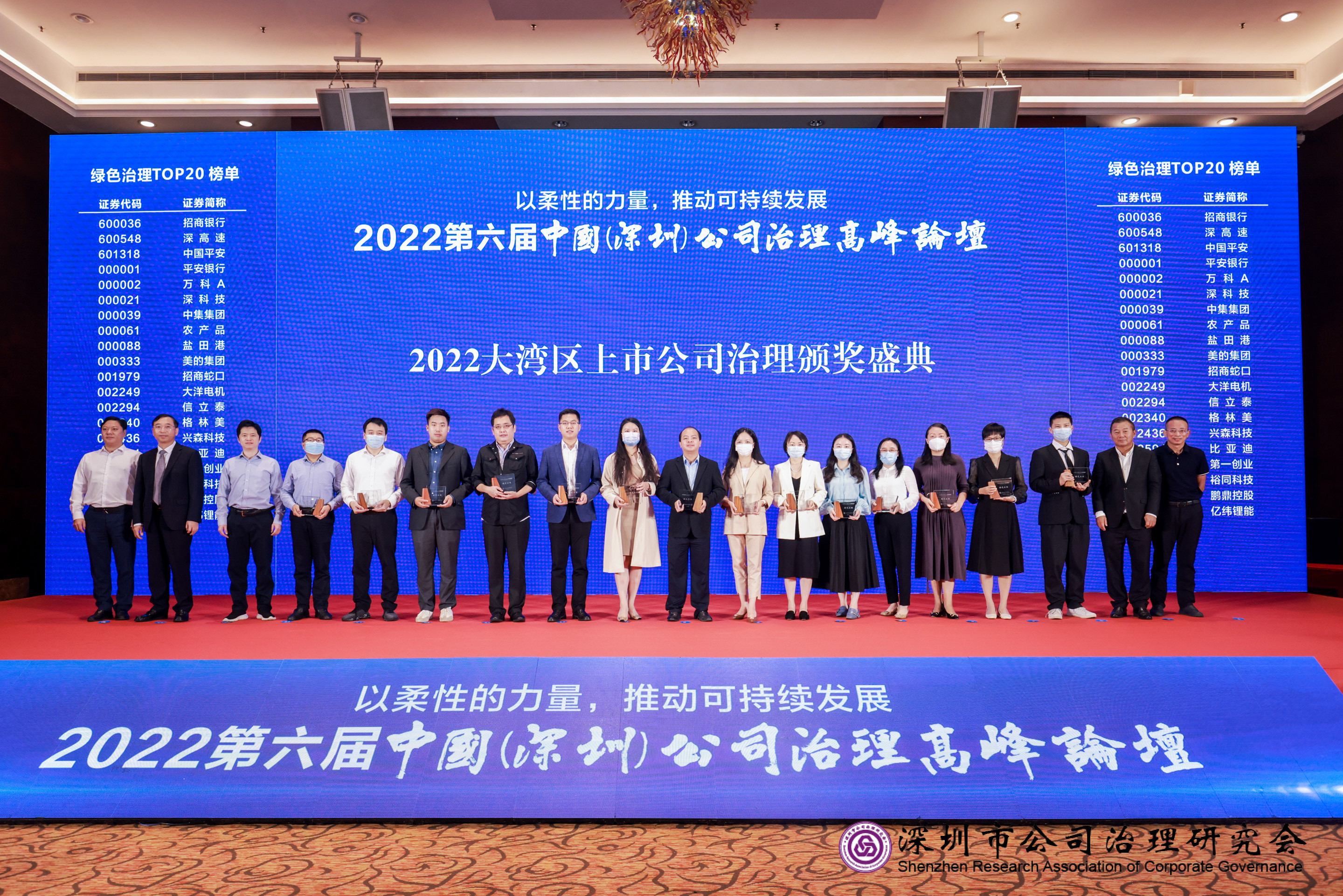 该奖项按照中国公司治理研究院的模型和算法,专家团队从公司治理的六大维度对682家大湾区上市公司进行严格评估、筛选、打分排名,形成入围名单;再经专家组的审核把关,报深圳证券交易所、深圳上市公司协会等部门核查通过,最终形成获奖名单。
