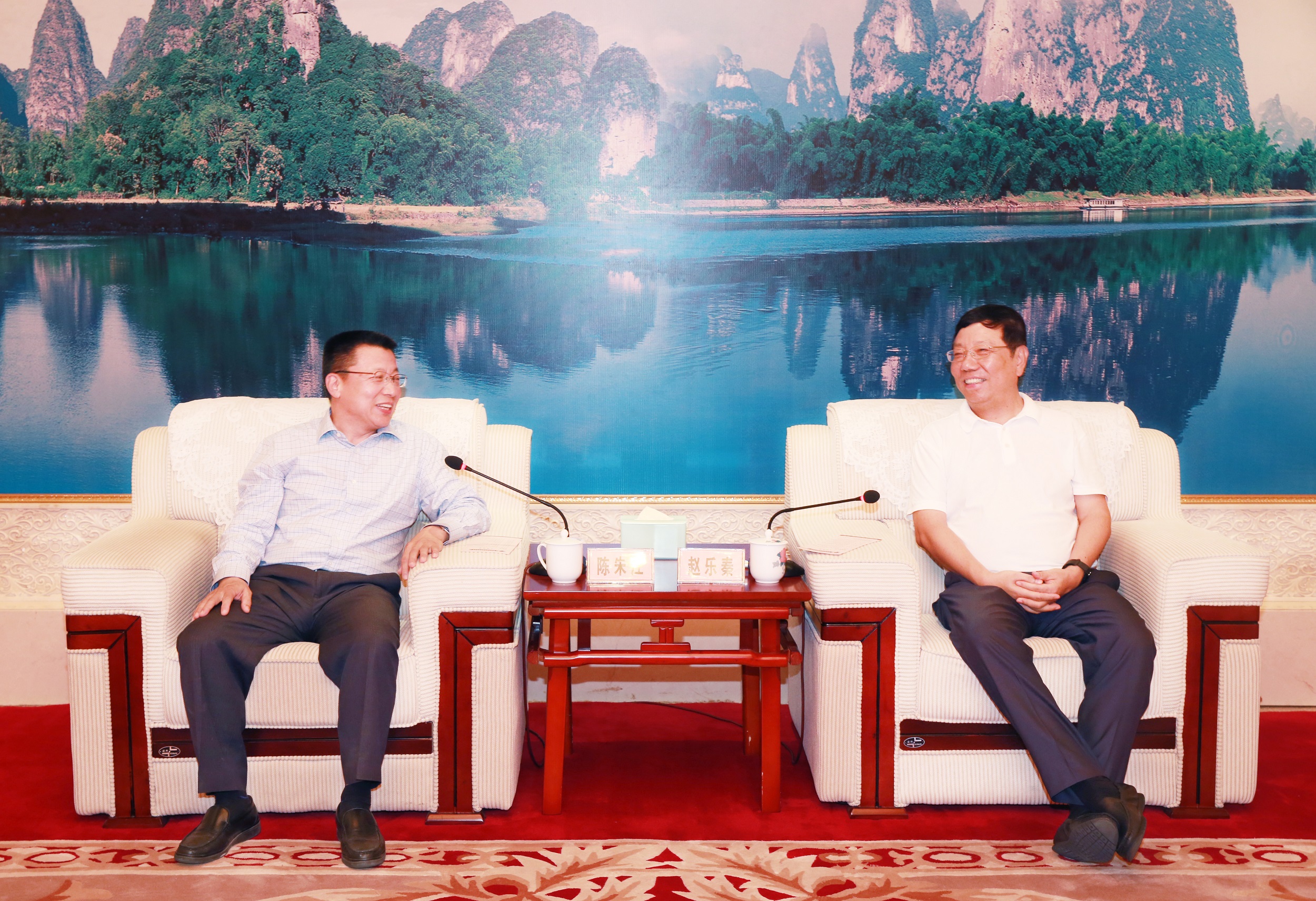陈朱江与赵乐秦举行简短会谈