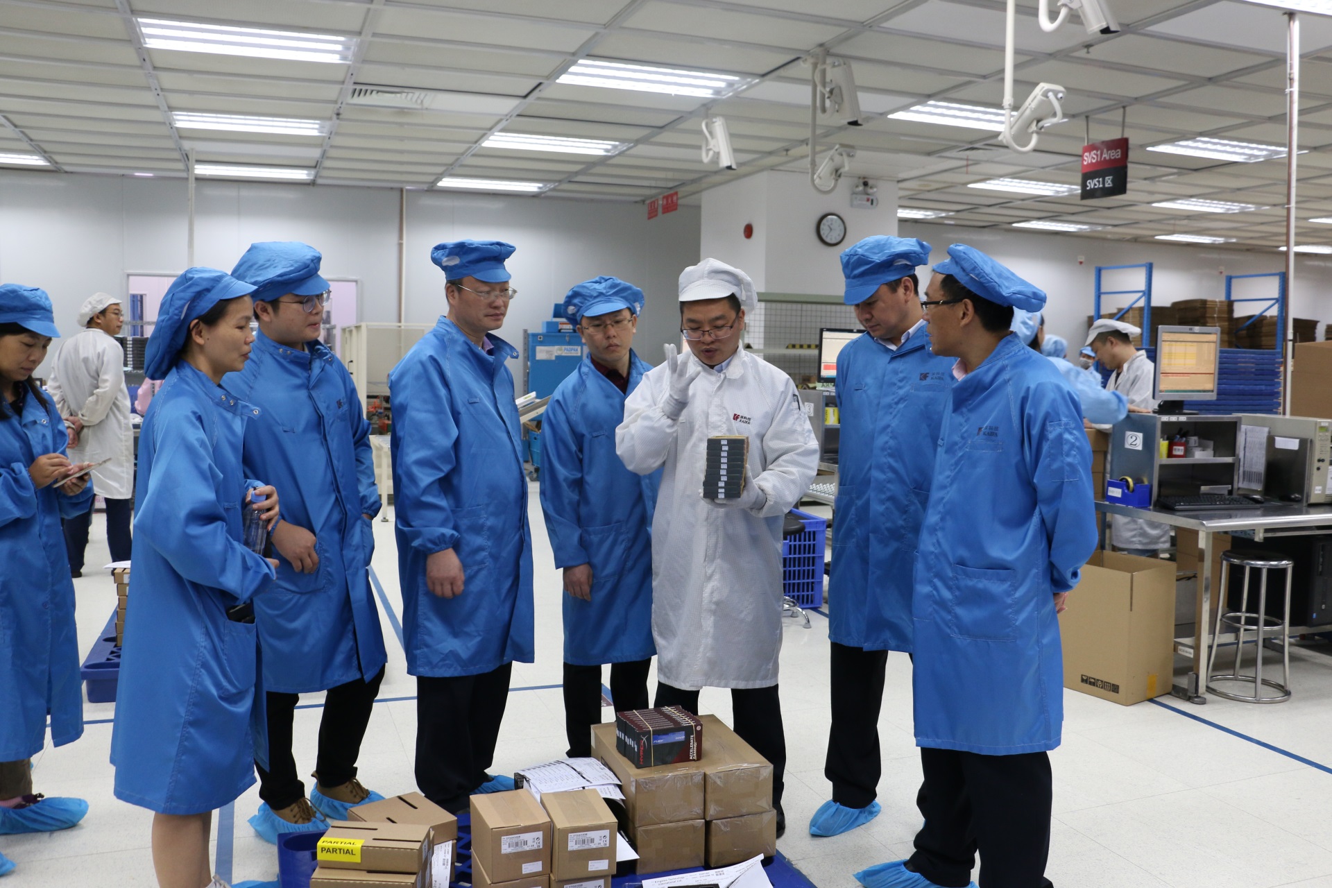 谷宝太一行首先参观了古天乐代言太阳集团沛顿、微电子及医疗产品事业部生产车间,实地了解国内领先的芯片封装业务、高端内存及健康医疗产品的生产流程。谷宝太对公司单颗芯片16层堆叠技术的研发试产及存储芯片测试程序的自主开发能力表示肯定。