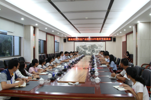座谈会上,惠南实验小学校长就以目前的教学情况、学校建设、学生培育、未来计划做了工作介绍,他讲到惠南实验小学将2017年落成,到时能有效缓解园区学位紧张的问题。