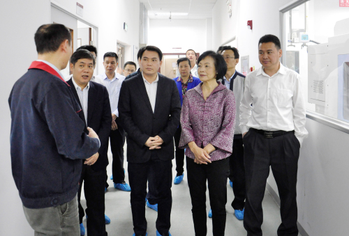 3月30日下午,徐建华来到东莞产业园。在长城开发园区,公司党委书记、副总裁陈朱江热情地接待了徐建华一行,并陪同参观最新进驻的通讯与消费电子事业部和国内智能电表事业部。其中,智能电表生产线在广泛推行自动化转型升级的成果引起了徐建华的注意。陈朱江介绍说,这条电表组装生产线的自动化程度处于业内领先水平,通过一系列自动化设备更新,优化工艺技术流程,可将工人数量降低60%,从而减少企业人力成本,提高了劳动生产率和产品优质率。徐建华对此表示肯定,并称这符合东莞“机器换人”扶持政策,要求有关部门协助企业进行申报。