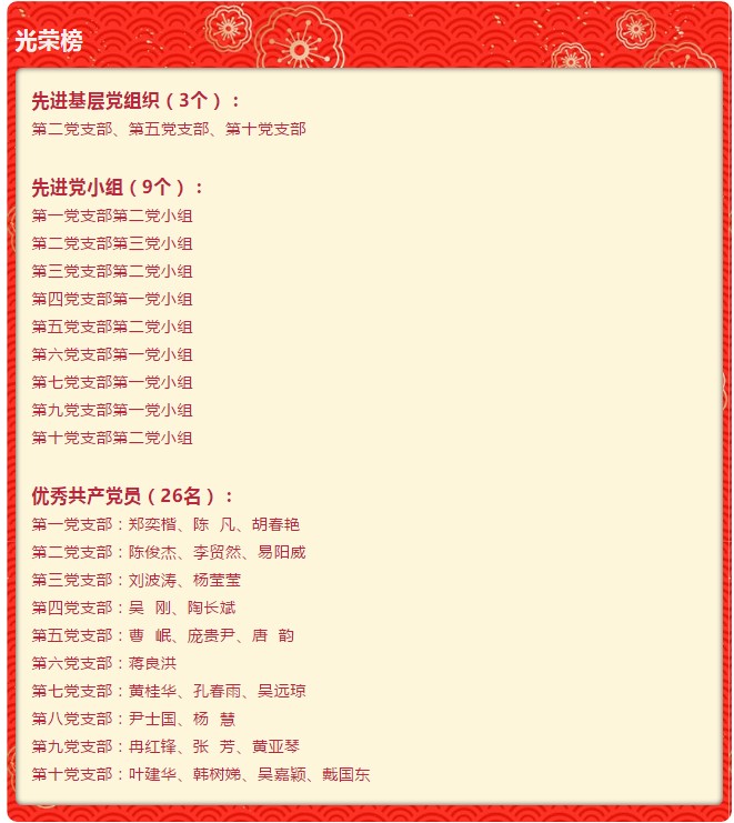 活动中,对在2017-2018年度党建工作中成绩优异的3个基层党组织,9个先进党小组以及26名优秀共产党员进行了表彰。