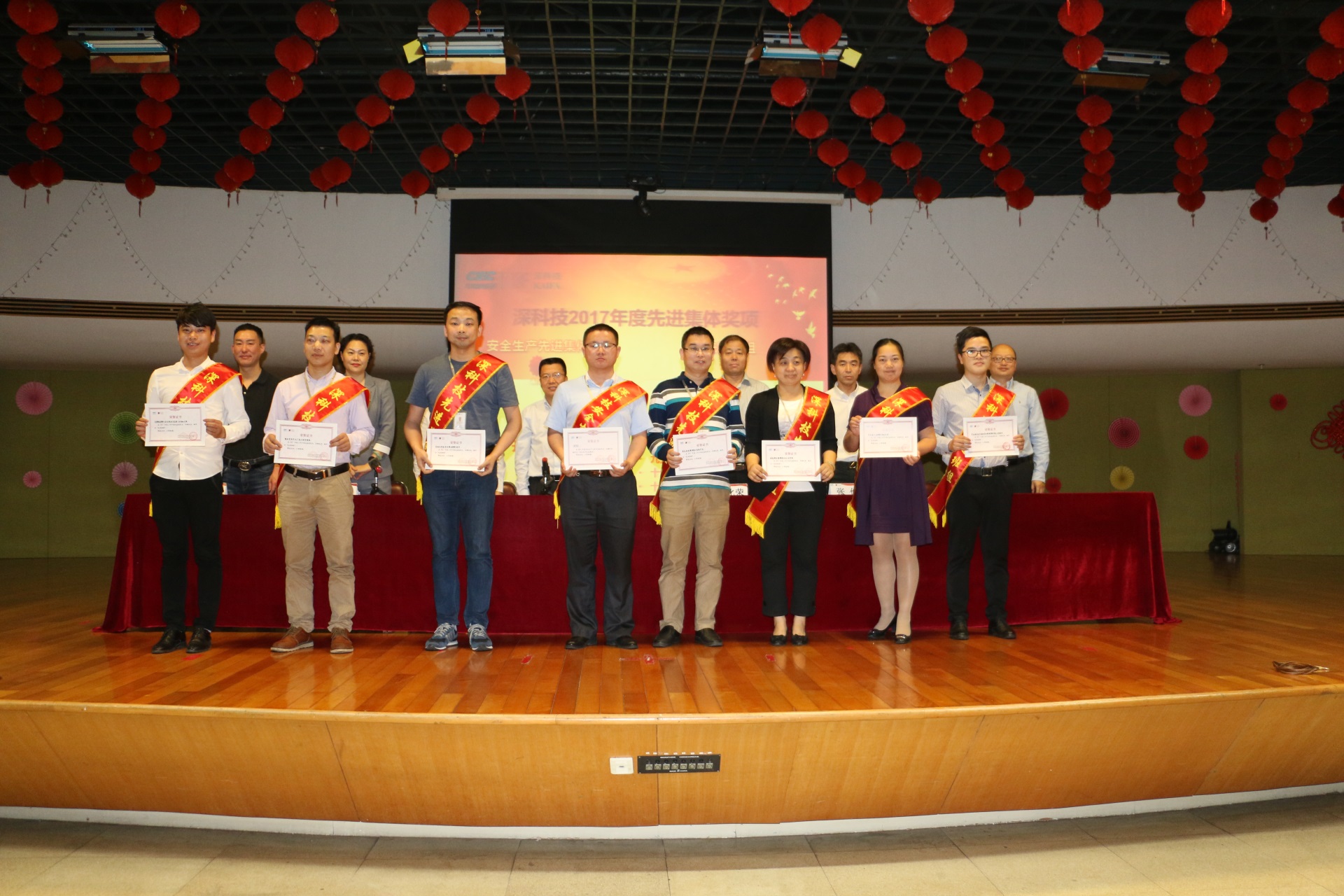(↓ 安全生产先进集体和先进班组的获奖代表上台领奖)