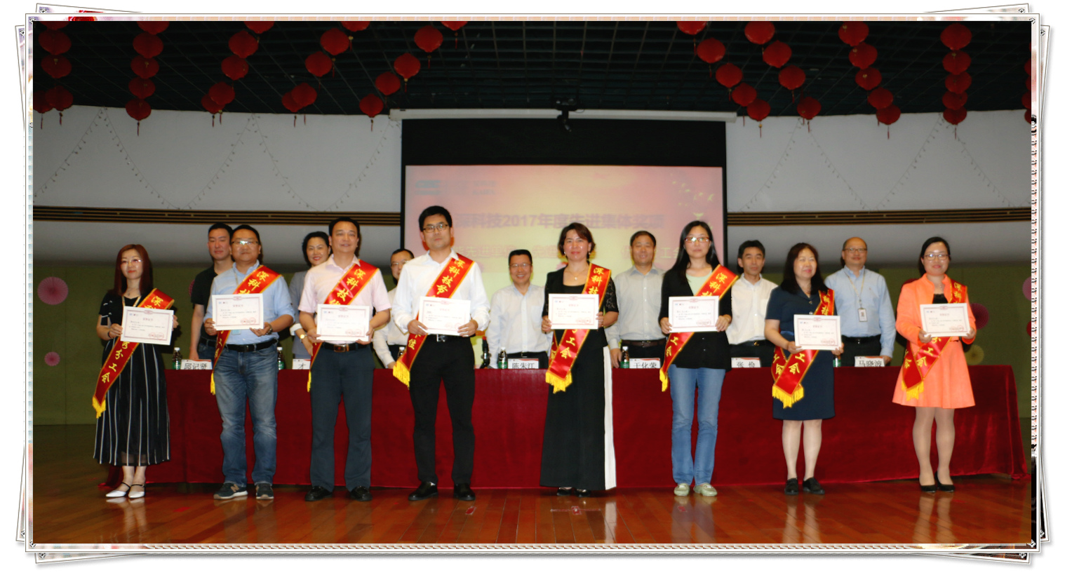(↓ 工会积极分子的获奖代表上台领奖)