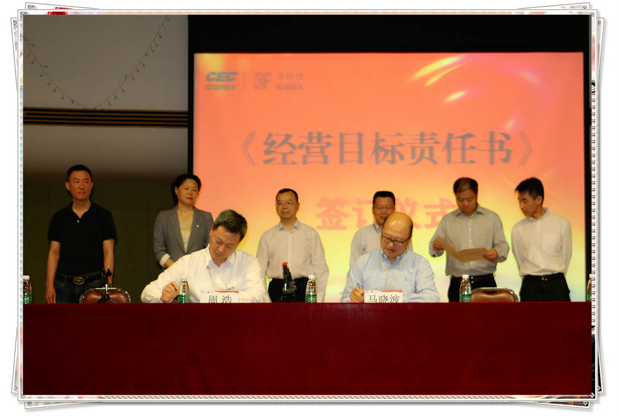 (↓ 马总与商业与工业产品事业部总经理周浩签署经营目标责任书)
